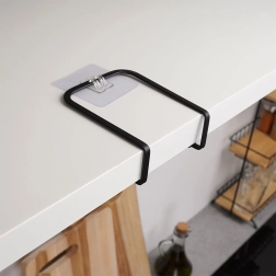 De montage is zo gedaan – de houder hoef je alleen over de plank te schuiven, zonder boren of gereedschap. Voor extra stabiliteit is er een transparante zelfklevende pad inbegrepen. De hoogwaardige metalen constructie garandeert een lange levensduur en betrouwbare draagkracht.