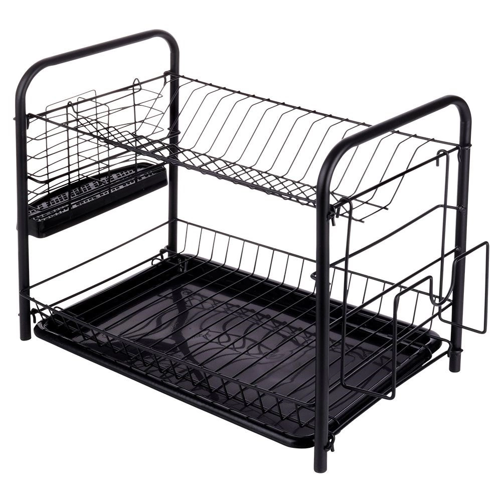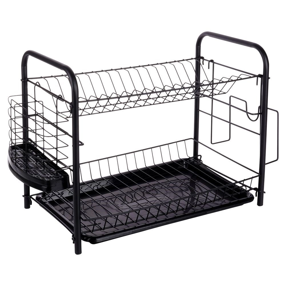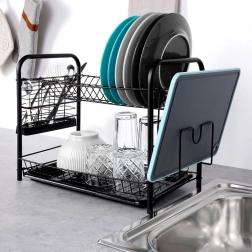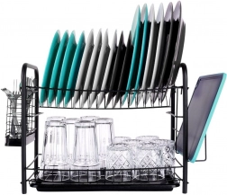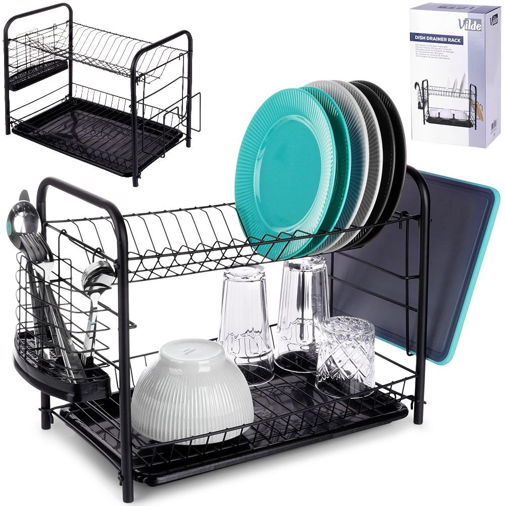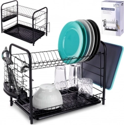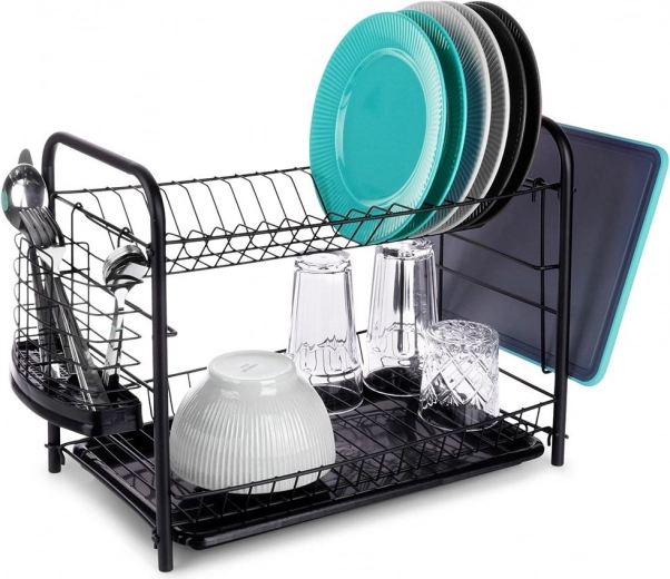 Houd het gebied rond de gootsteen netjes en droog de vaat efficiënt. Het afdruiprek met twee niveaus biedt een bovenste sectie voor borden (tot 16 stuks) en een onderste laag voor kommen, glazen of mokken. De afneembare lekbak vereenvoudigt het schoonmaken en beschermt het werkblad tegen water.