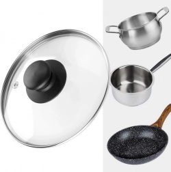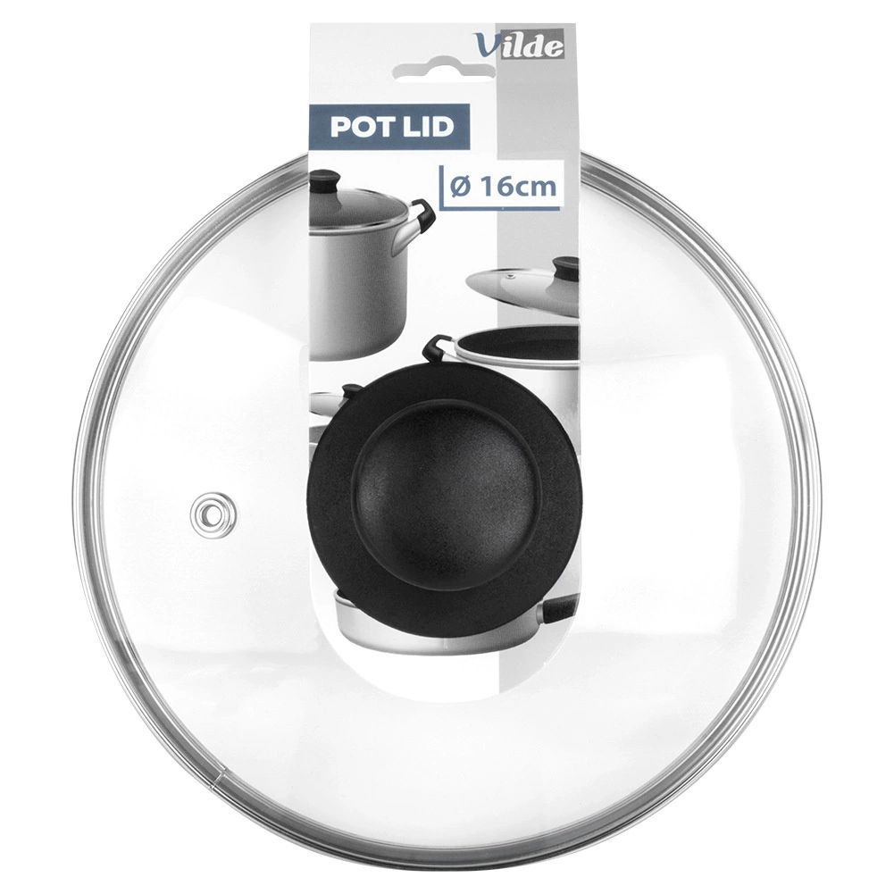 Universeel glazen deksel met een diameter van 16 cm, voorzien van een versterkte roestvrijstalen rand en een comfortabele greep. Dankzij het transparante, hittebestendige glas kunt u het kookproces eenvoudig controleren zonder op te tillen. Het deksel heeft een stoomontluchtingsgaatje, is hittebestendig tot 200 °C, versnelt het koken en voorkomt spatten van water en vet. Geschikt voor potten, pannen en steelpannen met dezelfde diameter, vaatwasserbestendig.