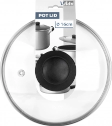 Het praktische glazen deksel is de ideale aanvulling voor potten, pannen en steelpannen met een diameter van 16 cm. Gemaakt van hittebestendig, helder glas met een roestvrijstalen rand in een elegante zilveren kleur en een duurzame zwarte greep. De licht bolle vorm bevordert een betere circulatie van hete lucht en behoud van de temperatuur van de bereide gerechten.