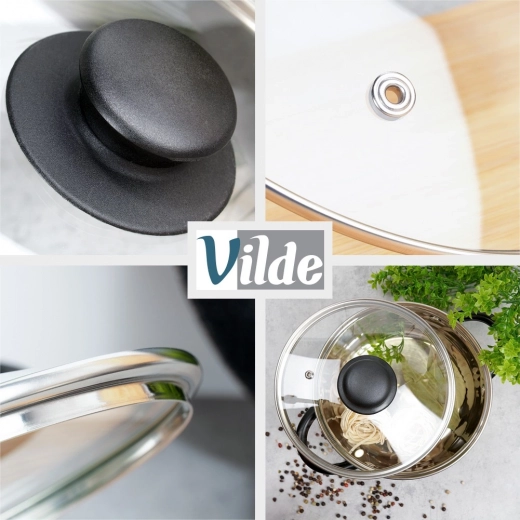 Roestvrijstalen rand, stevige greep en hittebestendig tot 200 °C. Het deksel is vaatwasserbestendig voor snelle en hygiënische reiniging.