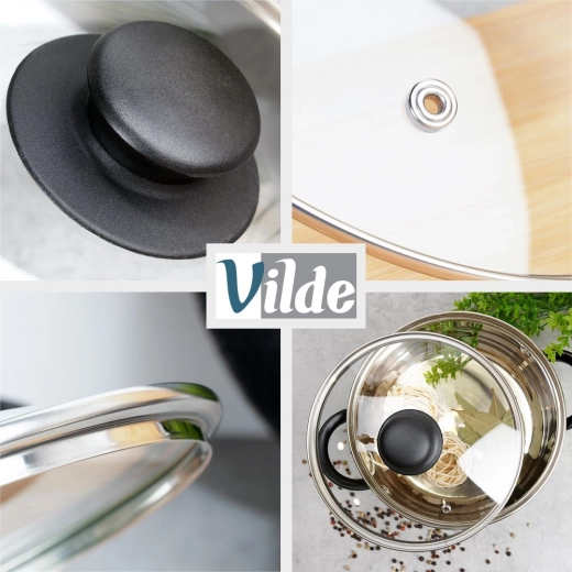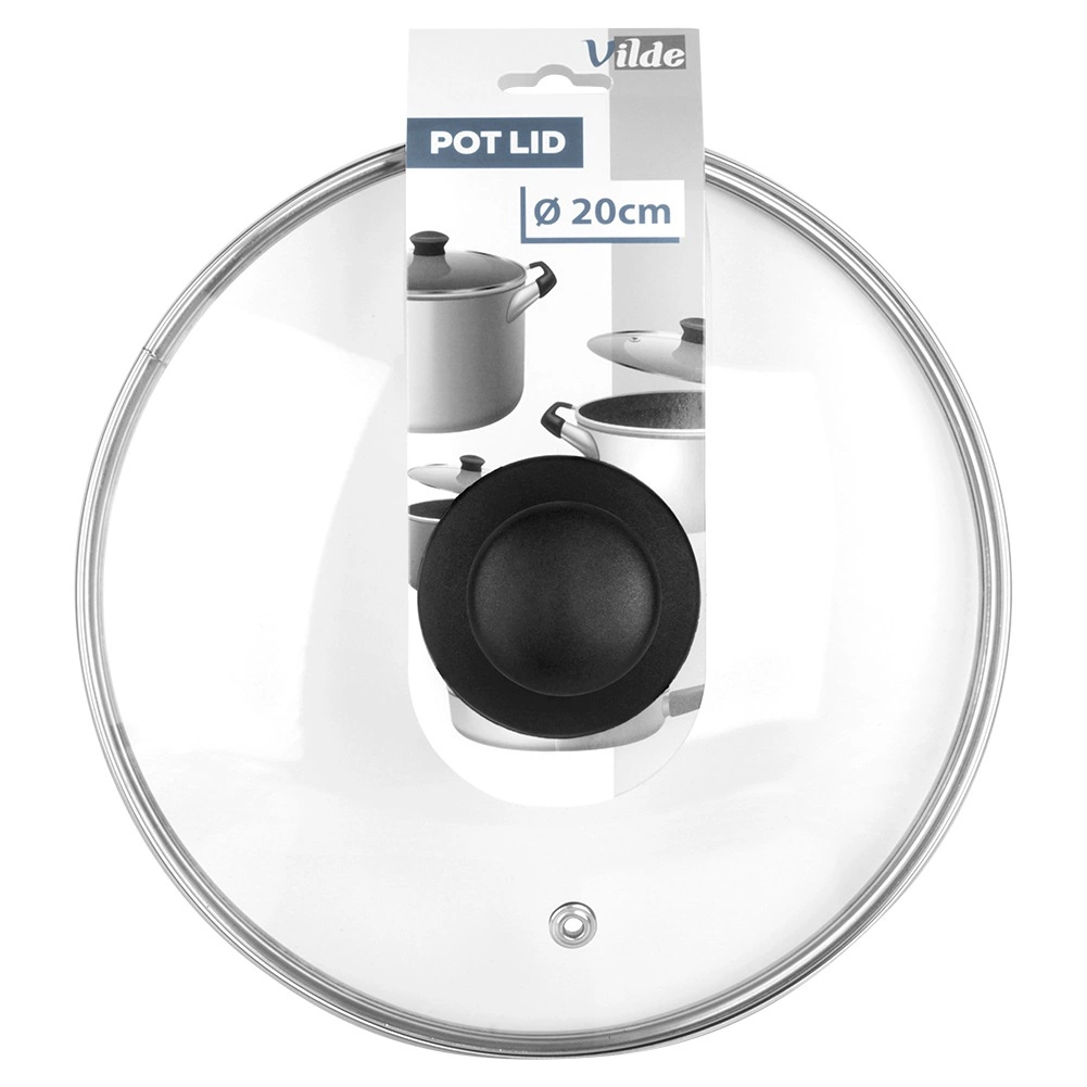 Dit VILDE glazen deksel met een diameter van 20 cm is een betrouwbare aanvulling voor dagelijks koken. Het heldere, hittebestendige glas maakt het mogelijk om het gerecht te controleren zonder het deksel op te tillen, waardoor warmte en tijd worden bespaard. De roestvaststalen omlijsting verhoogt de duurzaamheid en zorgt voor een stevige, goed afsluitende pasvorm op de pan.