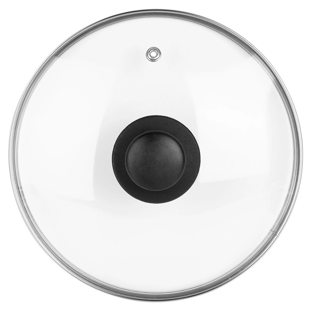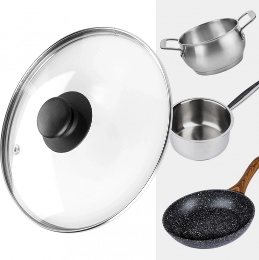 Universeel glazen deksel met een diameter van 20 cm, met roestvrijstalen rand en comfortabele knop. Zorgt voor sneller koken, minder rommel en betere controle over de bereiding. Dankzij het hittebestendige glas, het stoomventiel en de hoge rand sluit het perfect af, vermindert het spatten en kun je het kookproces volgen zonder het deksel op te tillen. Geschikt voor pannen, koekenpannen en steelpannen met dezelfde diameter.