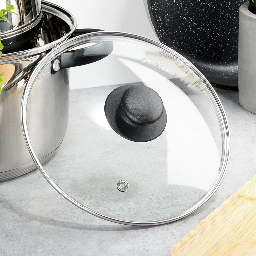 De roestvrijstalen rand verhoogt de duurzaamheid en de afdichting, terwijl de hittebestendige kunststof knop zorgt voor een zekere en comfortabele greep.