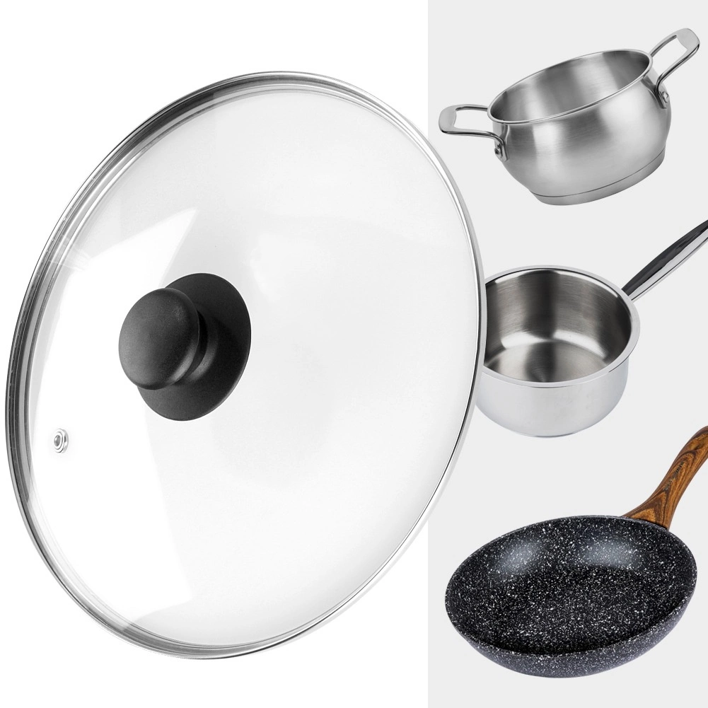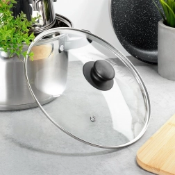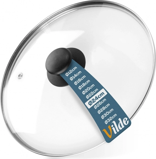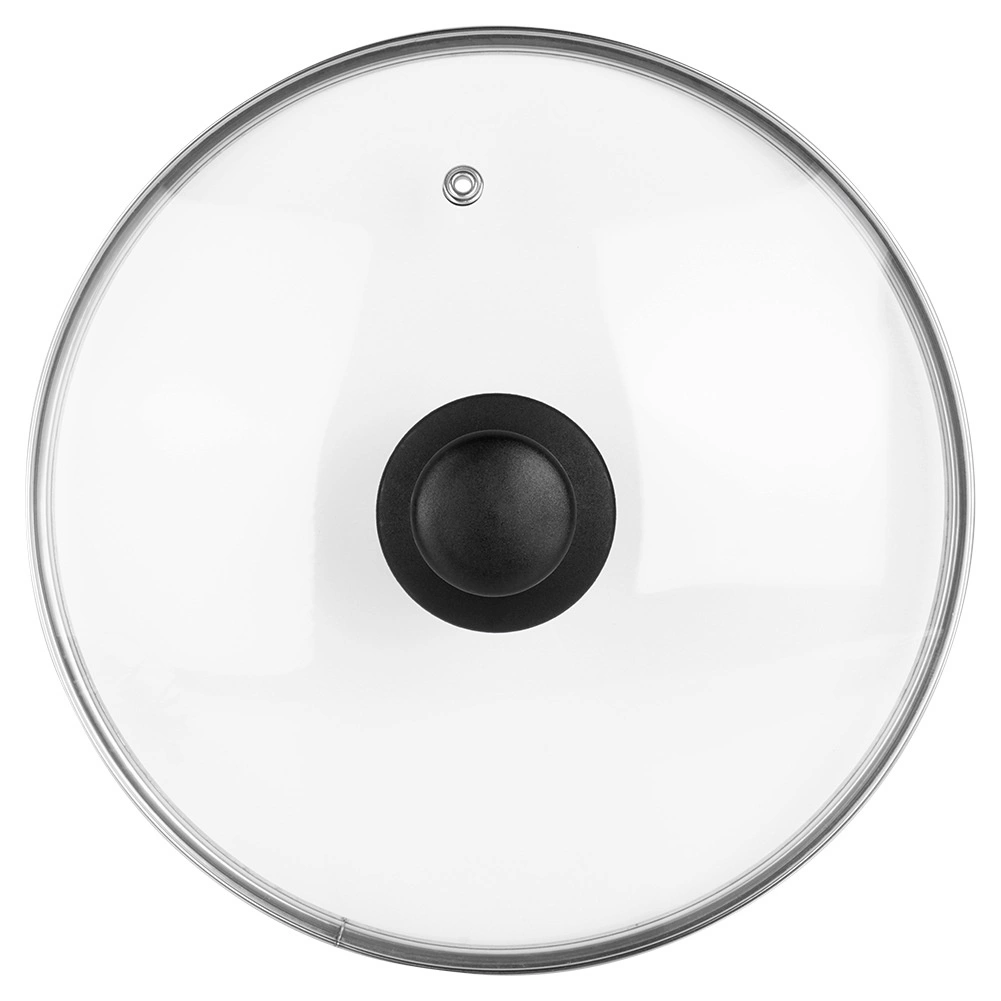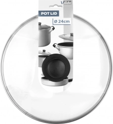 Praktisch glazen deksel dat past op potten, pannen en saus-/steelpan met een diameter van 24 cm. Gemaakt van hittebestendig, transparant glas met een roestvrijstalen rand in zilverkleur en een duurzame kunststof greep in zwart. De licht bolle vorm bevordert de circulatie van hete lucht en versnelt de bereiding.