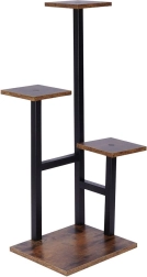 Elegante plantenstandaard met vier niveaus in industriële stijl, met ruimtebesparend ontwerp, stabiele constructie en stijlvolle houten planken voor je planten en decoraties. Met afmetingen van 36,5 × 32 × 84 cm en een draagvermogen van tot 15 kg (5 kg per plank) is hij ideaal voor de woonkamer, kantoor en balkon.