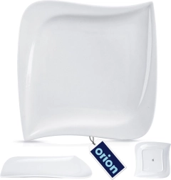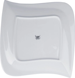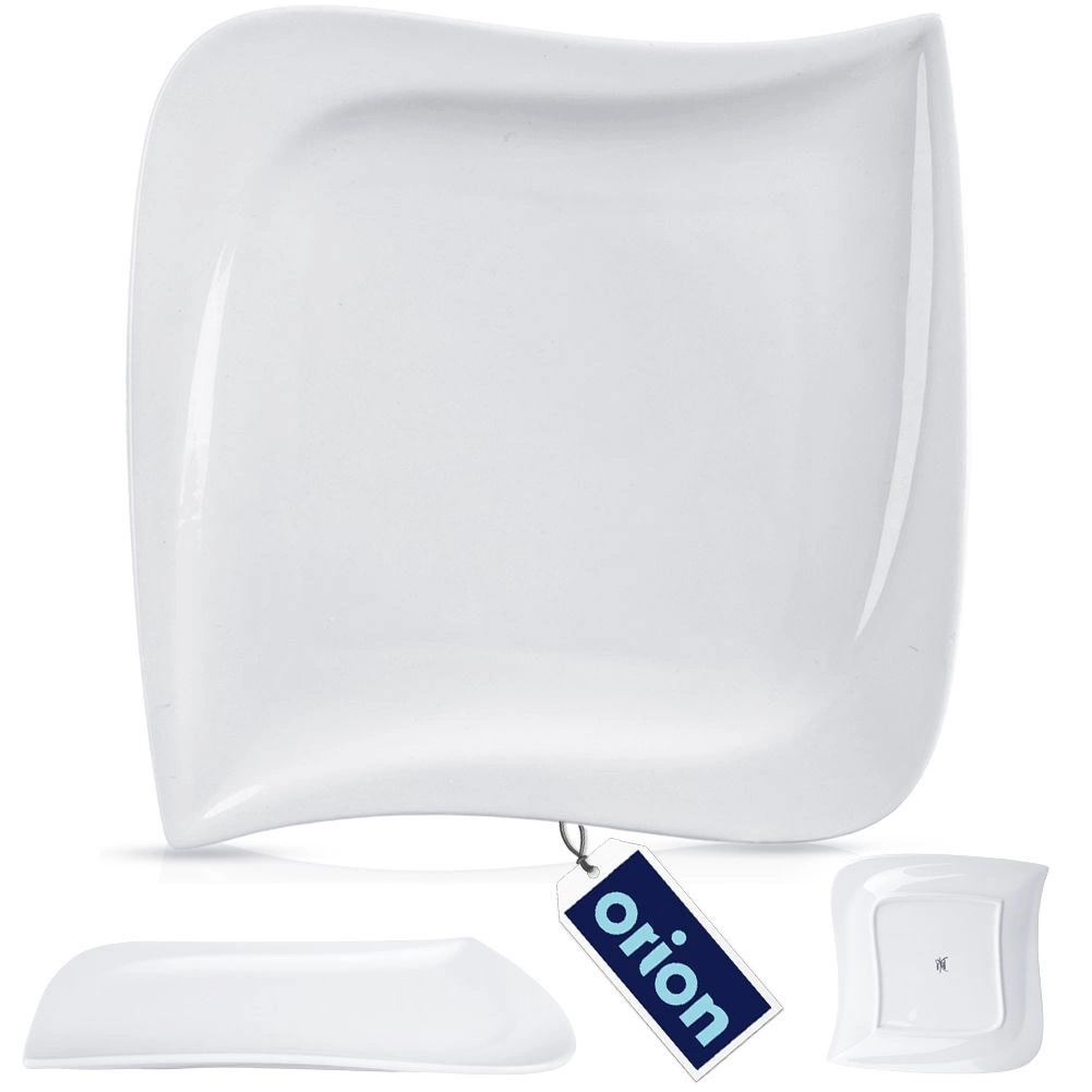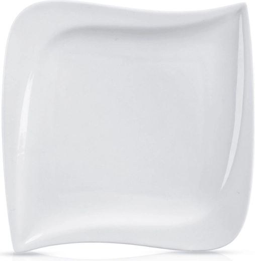 Universeel porseleinen bord uit de MONA-collectie met een minimalistische look en een modern design van een onregelmatige vierkant. De glanzend witte glazuur staat prachtig op elke tafel en combineert perfect met ander servies. Dankzij het vlakke oppervlak zijn gerechten eenvoudig te schikken en te serveren.
