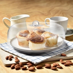 De voedselkap CHARISMA is een veelzijdige hulp in keuken, eetkamer en tuin. Hij houdt uw taarten, gebak, muffins, sandwiches of kazen langer vers en goed beschermd. Het heldere acryl biedt volledig zicht zonder af te dekken, waardoor hij ook perfect is voor serveren en presenteren in huis, café of patisserie.