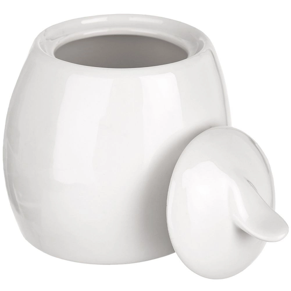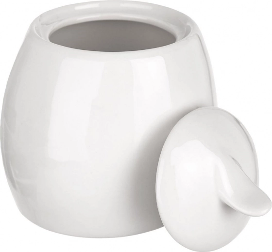Stijlvolle suikerpot van hoogwaardig wit porselein combineert een elegante look met praktisch gebruik. Dankzij de compacte afmetingen staat hij prachtig op tafel en het deksel met greep houdt de inhoud langer vers en beschermd.