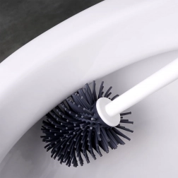 Deze moderne toiletborstel combineert functionaliteit, hygiëne en design. Siliconen haren in grafietkleur stoten vuil af, drogen snel en zorgen voor een lange levensduur zonder geurtjes. De compacte houder met vierkante basis houdt de borstel rechtop en maakt schone en geventileerde opslag mogelijk.