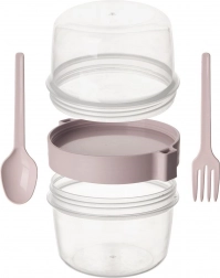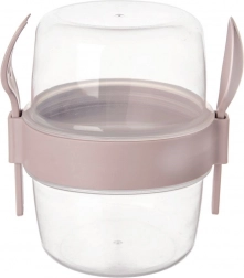 Geniet van verse yoghurt met je favoriete toppings altijd en overal. De tweelaagse beker scheidt yoghurt van muesli, fruit of noten, zodat alles knapperig blijft tot de laatste hap. De transparante wanden maken het eenvoudig om de inhoud te controleren zonder te openen.