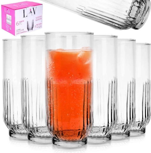 Deze set van 6 glazen combineert een strak design met functionaliteit. Het heldere glas met een opvallende verticale ribbelstructuur geeft dranken een aantrekkelijke uitstraling en zorgt tegelijkertijd voor een comfortabele grip. De hoge vorm is ideaal voor het serveren van water, zelfgemaakte limonades, ijsthee en mixed drinks.