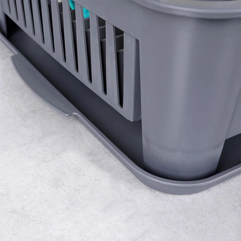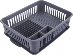 Houd je keuken schoon en georganiseerd. Dit grijze afdruiprek is gemaakt van hoogwaardige, duurzame kunststof en past dankzij de compacte afmetingen op de meeste aanrechten. De uitneembare afdruipbak vangt water op en beschermt het werkblad, terwijl de doordachte indeling zorgt voor snel en hygiënisch drogen van de vaat.