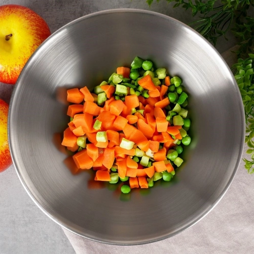 De diameter van 21,5 cm en inhoud van 1,9 l zijn perfect voor salades, deeg en het serveren van snacks.