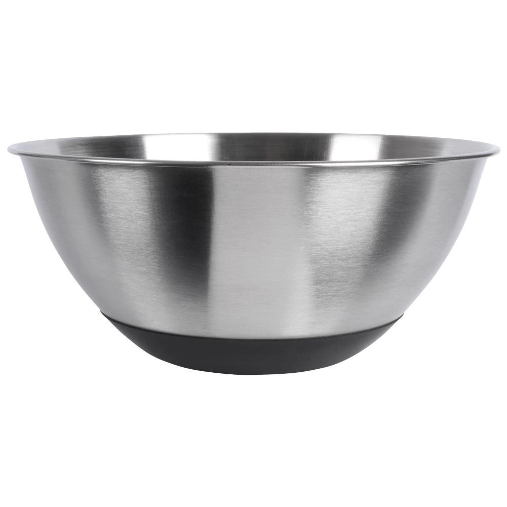 Deze roestvrijstalen keukenschaal met matte afwerking is een betrouwbare hulp voor dagelijks koken en bakken. De antislip rubberen basis houdt de schaal stevig op zijn plek tijdens mengen en kloppen, terwijl de brede rand het schenken en hanteren vergemakkelijkt. Het elegante, klassieke design maakt direct serveren van salades, dips of fruit op tafel mogelijk.