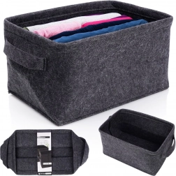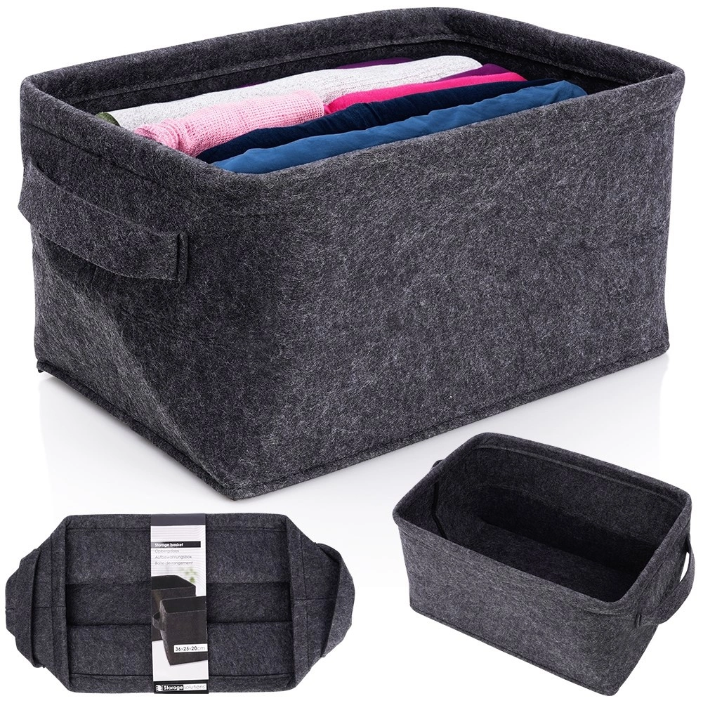 Deze opvouwbare vilten mand met afmetingen 36 × 27 × 20 cm is een uitstekende keuze voor overzichtelijke opslag van textiel, speelgoed, accessoires en kantoorbenodigdheden. Dankzij de stevige, dikke vilten stof behoudt hij zijn vorm en is hij toch licht en makkelijk te verplaatsen.