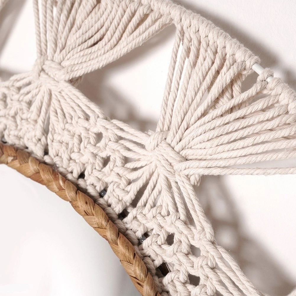 Deze designspiegel is een uitstekende keuze voor de woonkamer, hal en slaapkamer. De combinatie van natuurlijke materialen en handmatig ogend vlechtwerk vormt een effectvolle lijst die een opvallend designelement wordt in boho-, rustieke en moderne interieurs.