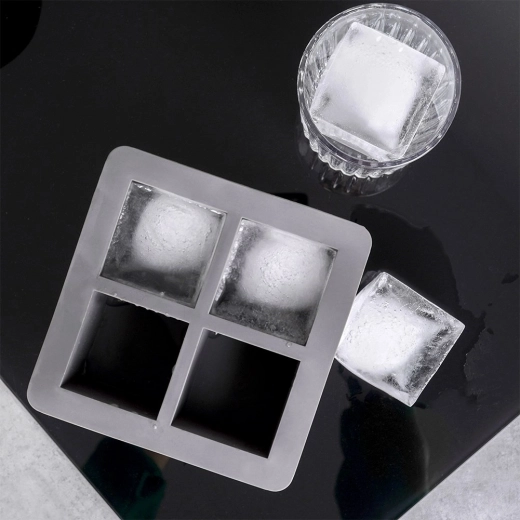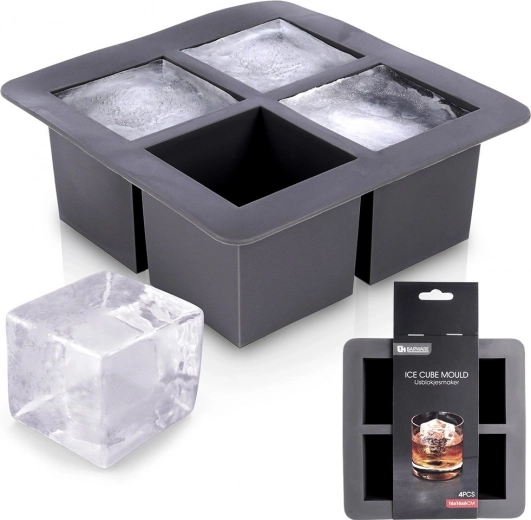 Praktische siliconen ijsvorm maakt 4 extra grote vierkante blokjes van 5,5 × 5,5 × 5,5 cm die langzamer smelten en drankjes langer koud houden zonder onnodig te verdunnen. Dankzij de flexibele siliconen haal je de blokjes gemakkelijk eruit en is de vorm eenvoudig schoon te maken, ook in de vaatwasser.