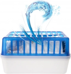De vervangbare korrels werken 2–5 maanden, afhankelijk van de vochtigheid en temperatuur van de ruimte (aanbevolen voor kamers tot ca. 50 m²). Het opgevangen water verzamelt zich op de bodem van de container – zodra deze vol is, kun je het reservoir veilig legen en na uitputting van de werking de korrels vervangen.