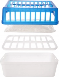 De bovenkap met ventilatieopeningen zorgt voor optimale circulatie, waardoor de korrels sneller vocht opnemen en de efficiëntie van het systeem toeneemt.