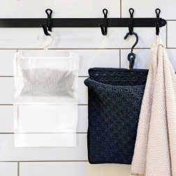 De geïntegreerde haak maakt snelle plaatsing overal mogelijk – in een kledingkast, berging of badkamer. Neemt weinig ruimte in en werkt zonder elektriciteit.