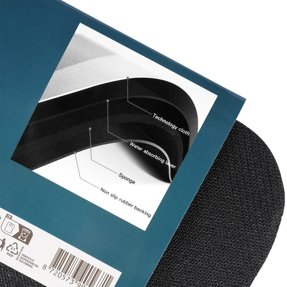 De rubberen onderlaag hecht stevig aan de vloer, vermindert verschuiven en verhoogt de veiligheid, zelfs op natte oppervlakken.