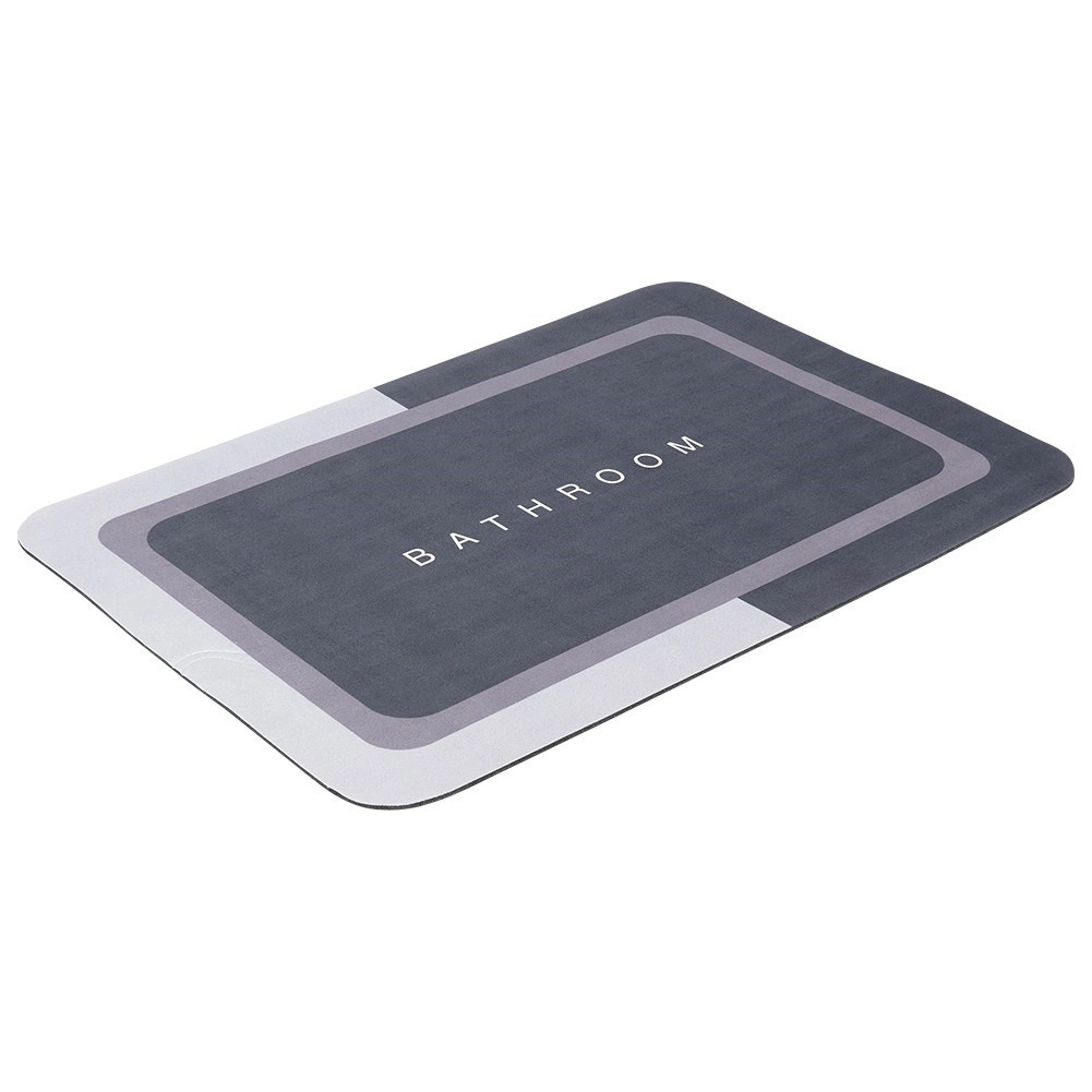Praktische antislip badkamermat van 59 × 39 cm, gemaakt van aangenaam polyester met een absorberende laag. Dankzij de antislip onderzijde blijft de mat stevig op zijn plek, neemt hij water effectief op en beschermt hij tegen een koude vloer. De elegante grijstinten passen moeiteloos in elke badkamer.