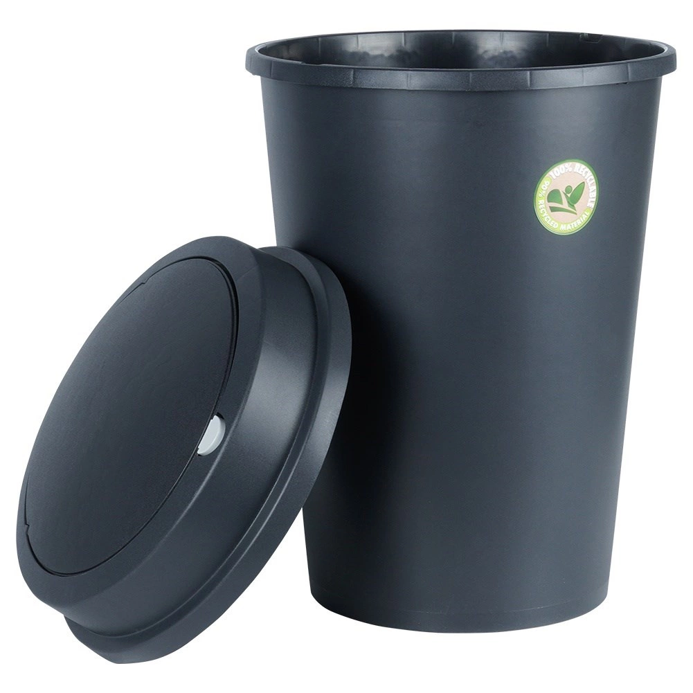Deze zwarte prullenbak van 47 liter is ontworpen voor dagelijks gemak en netheid. Hij heeft een twee-fasen deksel voor snel weggooien via de kantelfunctie en voor openen met een drukknop, wat helpt geurverspreiding te beperken. Dankzij het tijdloze design past hij perfect in zowel moderne als klassieke interieurs.