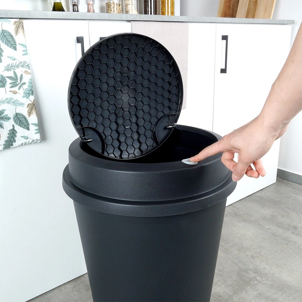 Gooi afval snel weg via de kantelfunctie, of open het deksel met één hand via de knop. Hygiënische oplossing die geurtjes beperkt.