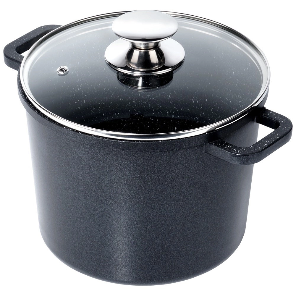 De hoge pan GRANDE is gemaakt van duurzaam aluminium met een antiaanbak granieten PFLUON-coating aan de binnenzijde, die vrij is van PFOA en PTFE. Zo bereidt u gezondere gerechten met minder vet en zonder aanbranden. Het glazen deksel met roestvrijstalen rand en ontluchtingsopening maakt controle tijdens het koken mogelijk zonder onnodig optillen.