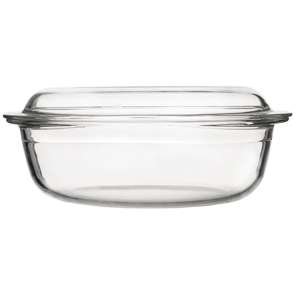 Brede randen maken dragen eenvoudig en het heldere glas laat je het bakproces controleren zonder het deksel op te tillen.