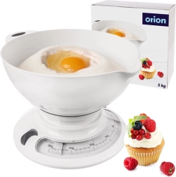 Deze mechanische ORION-weegschaal combineert een klassiek ontwerp met hoge functionaliteit. De afneembare plastic kom in het wit heeft een inhoud van 2,6 l en maakt wegen en overgieten gemakkelijk dankzij de praktische tuit. De overzichtelijke wijzerplaat met schaal tot 5 kg toont waarden in gram/kilogram en in pond/ounce, waardoor hij geschikt is voor zowel Nederlandse als buitenlandse recepten.