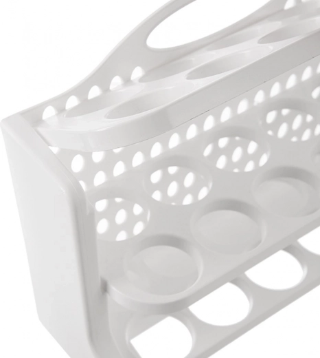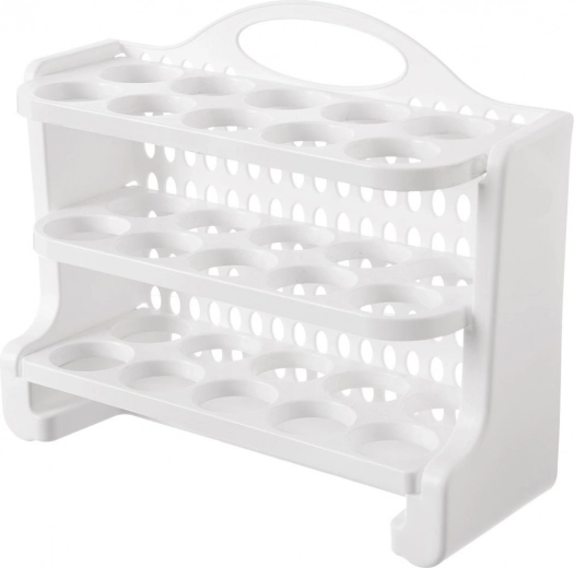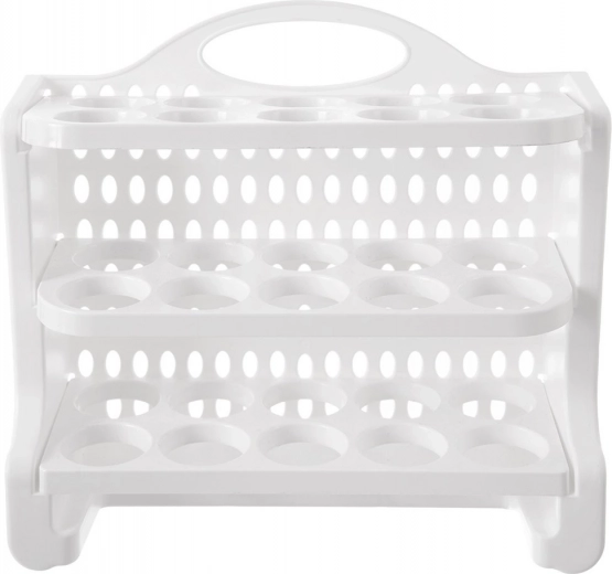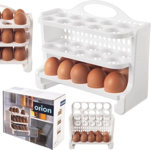 Houd je koelkast perfect georganiseerd. De ORION eierhouder met drie niveaus en een capaciteit van 30 stuks is gemaakt van hoogwaardig, voedselveilig plastic in het wit. Elk niveau heeft toegewezen posities voor eieren, die rollen voorkomen en het risico op beschadiging minimaliseren. Dankzij de compacte afmetingen van 28 × 10 × 22,5 cm past hij gemakkelijk op een plank en in de koelkastdeur (controleer vooraf de compatibiliteit met jouw model).
