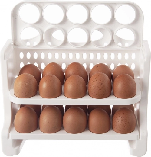 De geïntegreerde handgreep en opklapbare niveaus vergemakkelijken de bediening en maken het mogelijk snel eieren uit de lagere niveaus te pakken.
