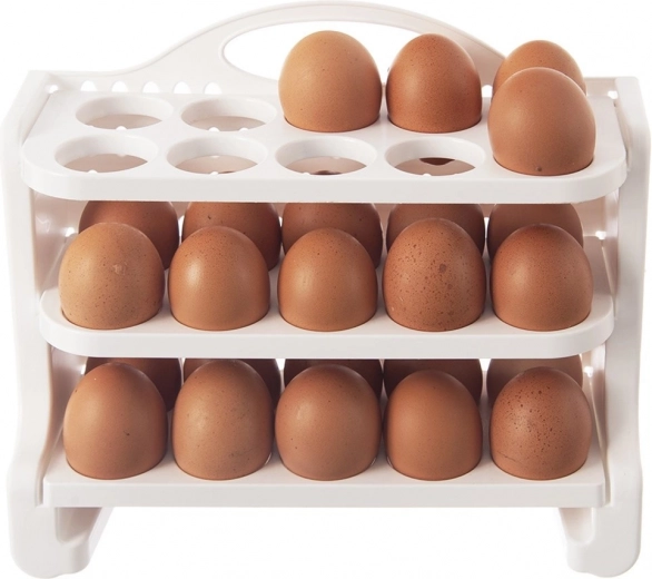 Drie lagen van elk 10 stuks houden de eieren overzichtelijk en veilig. Ideaal voor grotere huishoudens en vaak bakken.