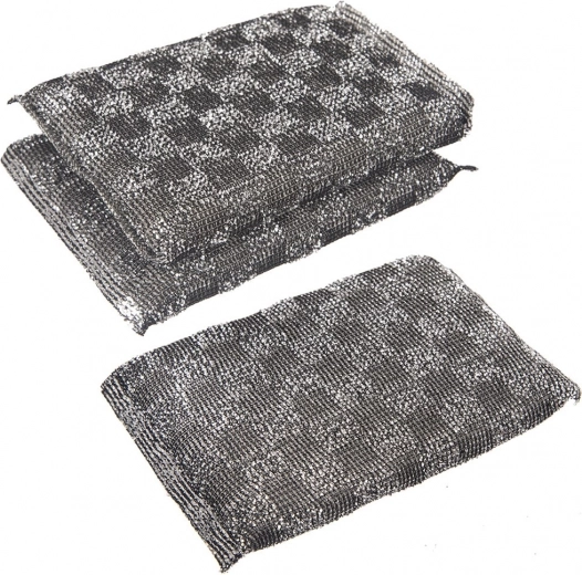 De set van 3 sponsjes van het type metalen schuurspons is ideaal voor keukengerei, pannen, potten en werkbladen. De binnenste schuimlaag zorgt voor uitstekende absorptie, terwijl de duurzame buitenlaag van polyester vet en aangekoekte resten aanpakt zonder onnodige krassen.