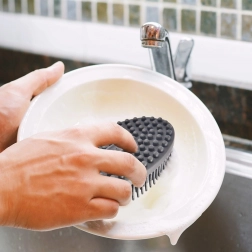 In de keuken is hij geschikt voor servies, pannen, potten en delicate oppervlakken zonder krassen. In de badkamer gebruik je hem voor exfoliatie en massage van rug, handen of voeten. Het compacte formaat van 12 × 7 cm ligt uitstekend in de hand en de ergonomische ovale vorm zorgt voor een zekere grip, zelfs in een vochtige omgeving.