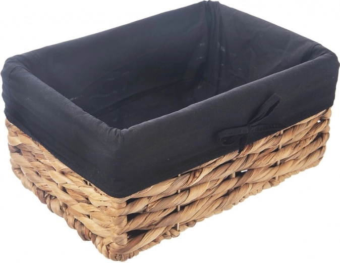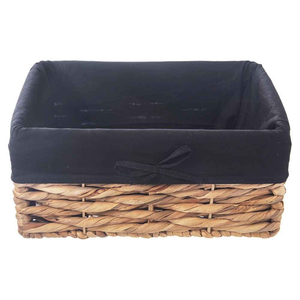 De elegante opbergmand van natuurlijk materiaal is een praktische hulp in de woonkamer, badkamer, slaapkamer en garderobe. Dankzij het stevige handgevlochten werk en het metalen frame houdt hij alles op zijn plek, van cosmetica en accessoires tot wasgoed en kleine items. De zwarte stoffen inzet met strik beschermt de inhoud en geeft de mand een moderne uitstraling.