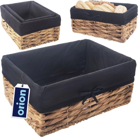 Handgevlochten opbergmand van waterhyacint met een stevig metalen frame en een uitneembare zwarte textiele voeringUniverseel inzetbaar in de woonkamer, badkamer, slaapkamer en kleedkamer, ook geschikt voor het serveren van brood en gebak thuis en in de horeca. Stijlvolle natuurlijke look en eenvoudig onderhoud dankzij de wasbare voering.