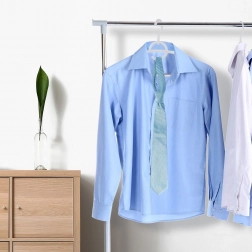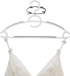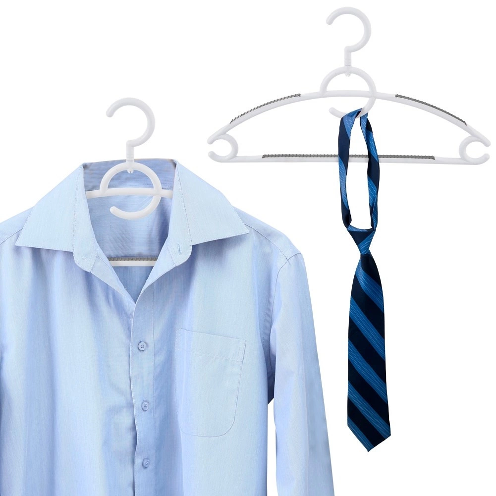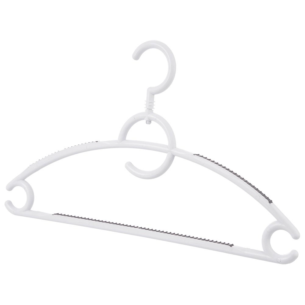 Elke hanger heeft rubberen antislipstroken op de schouders en de onderste stang, zodat kleding niet afglijdt. Er zijn zijdelingse haakjes voor jurkbandjes en een onderste lat voor broeken of sjaals. De draaibare haak laat je kleding precies zo ophangen als je nodig hebt – in de kledingkast, op een rek of in de winkel.