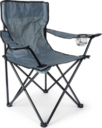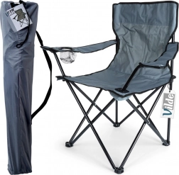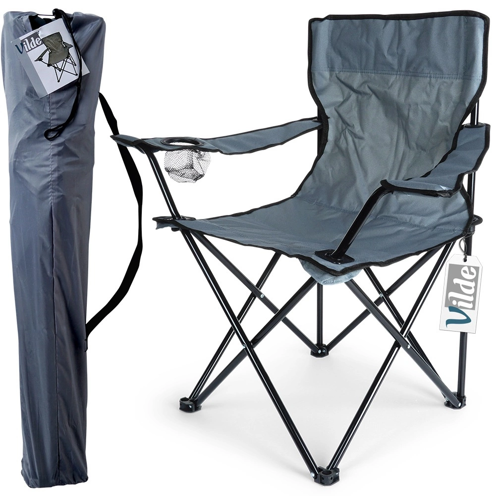 De opvouwbare toeristenstoel VILDE is een betrouwbare partner voor al je outdooractiviteiten. Het robuuste stalen frame in zwart, gecombineerd met een duurzame polyester stof, zorgt voor stabiliteit, comfort en een lange levensduur, zelfs bij veelvuldig gebruik in de natuur. Praktische armleuningen en een ingebouwde houder voor beker of blikje verhogen het zitcomfort.