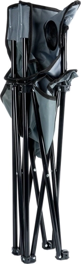 Lichte en praktische opvouwbare stoel voor kamperen, strand en vissen. Biedt een stevige metalen constructie, een duurzame polyester bekleding in grijs, armleuningen en een geïntegreerde bekerhouder. Eenvoudig uit te klappen en in te klappen, en dankzij de draagtas met schouderriem neem je hem overal mee naartoe. Draagvermogen tot 110 kg.