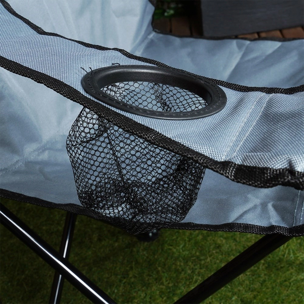 Armleuningen met een netvormige bekerhouder zorgen voor aangenaam zitten aan het water of bij het kampvuur. Ideaal voor bekers en blikjes.