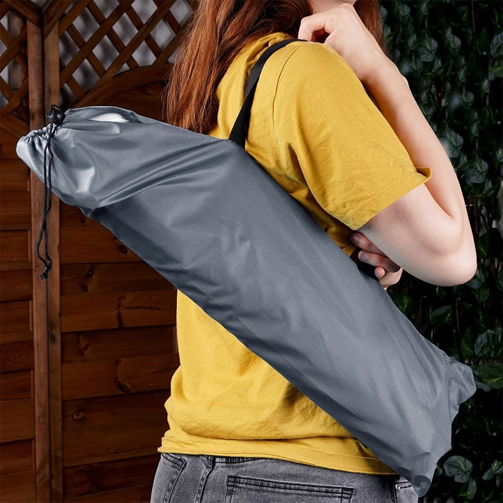 Dankzij de compacte afmetingen is de stoel snel op te vouwen en op te bergen in de meegeleverde draagtas met riem, zodat hij nauwelijks ruimte inneemt in de auto of kast. De materialen zijn weerbestendig, waardoor de stoel uitstekend presteert op het strand, in de tuin en op de camping.