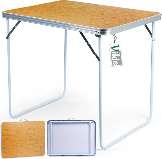 De lichte en duurzame opvouwbare tafel is ideaal voor in de tuin, op het balkon, op het terras en voor onderweg – kamperen, bivakkeren of picknick. Het MDF-blad in modern houtdecor is beschermd door een speciale oppervlakteafwerking, de aluminium rand en stalen poten zorgen voor stabiliteit en een lange levensduur. Ingevouwen heeft hij compacte afmetingen en de vorm van een plat koffertje met een comfortabel handvat.
