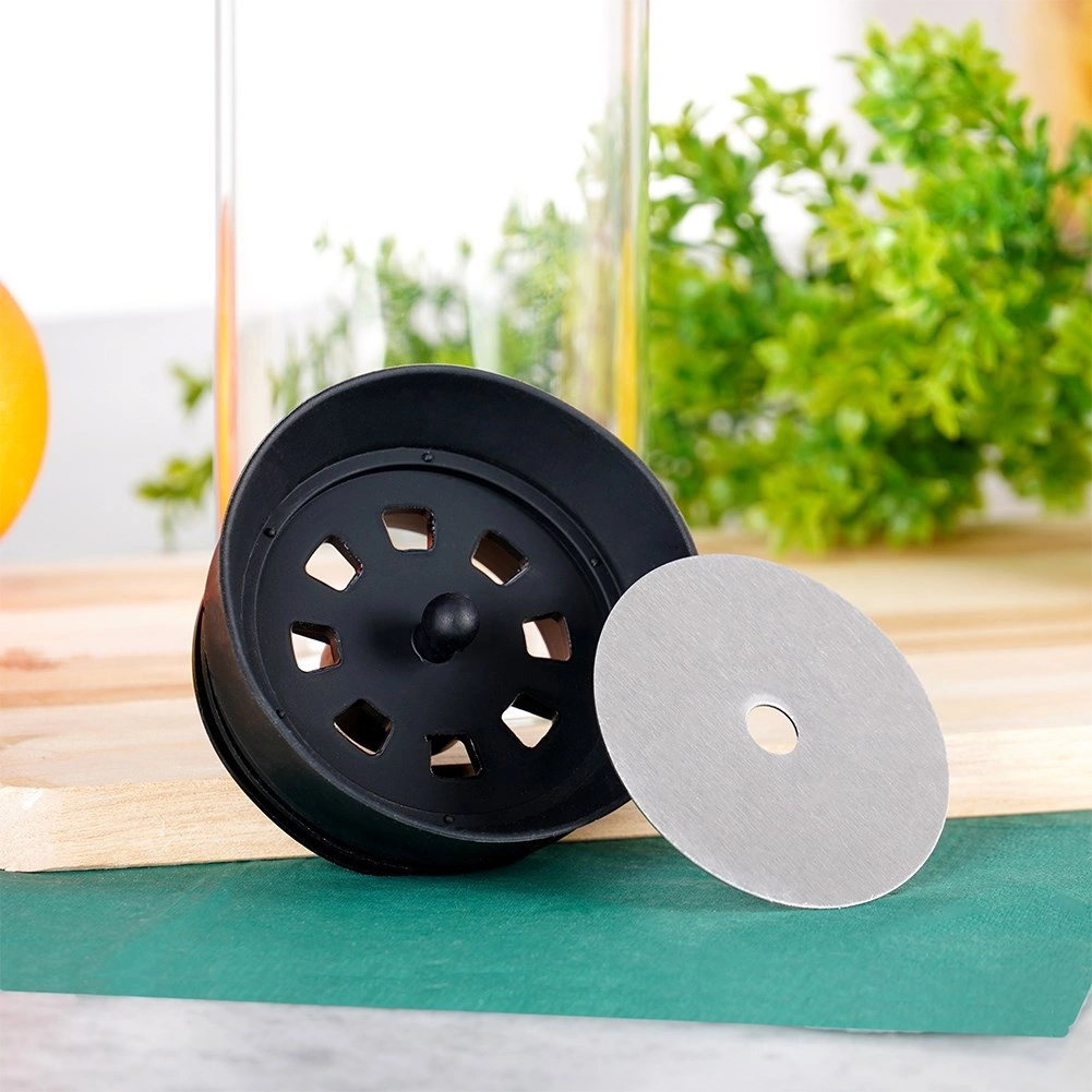 Het speciaal ontworpen deksel met een schoon-schenksysteem voorkomt nadruppelen langs de wanden en beschermt de drank tegen insecten.