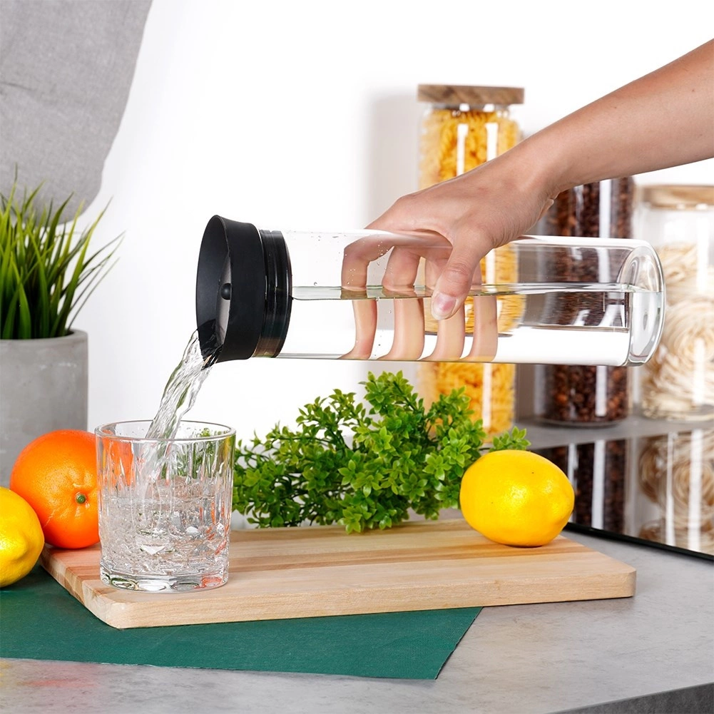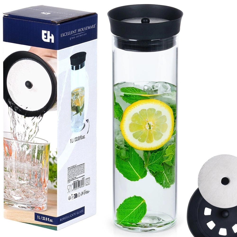 Deze veelzijdige karaf is gemaakt van helder borosilicaatglas, dat uitblinkt in duurzaamheid en een elegant uiterlijk. Het deksel, een combinatie van siliconen en roestvrij staal, zorgt voor schoon schenken zonder druppelen en beschermt de drank tegen vuil en insecten.