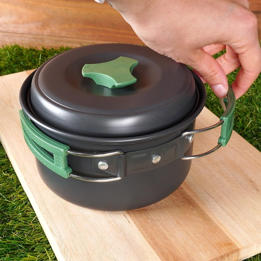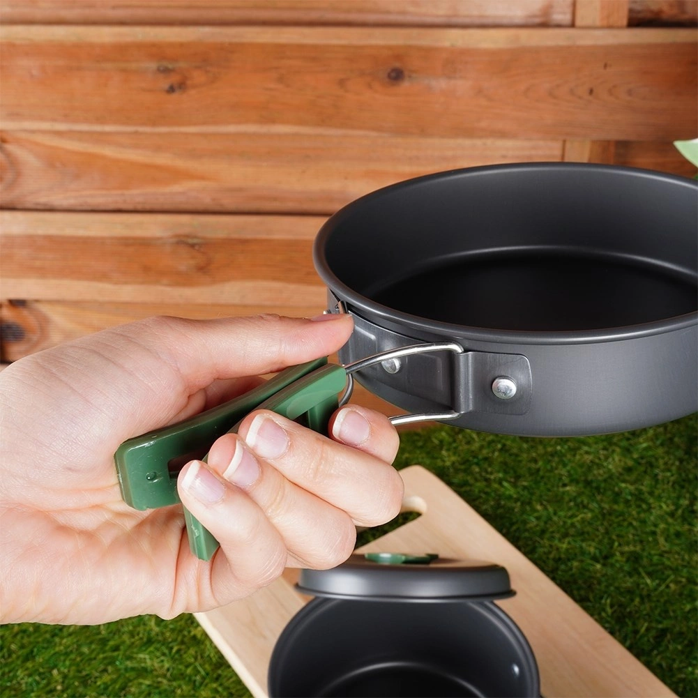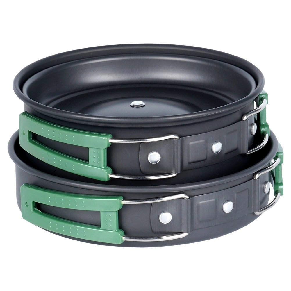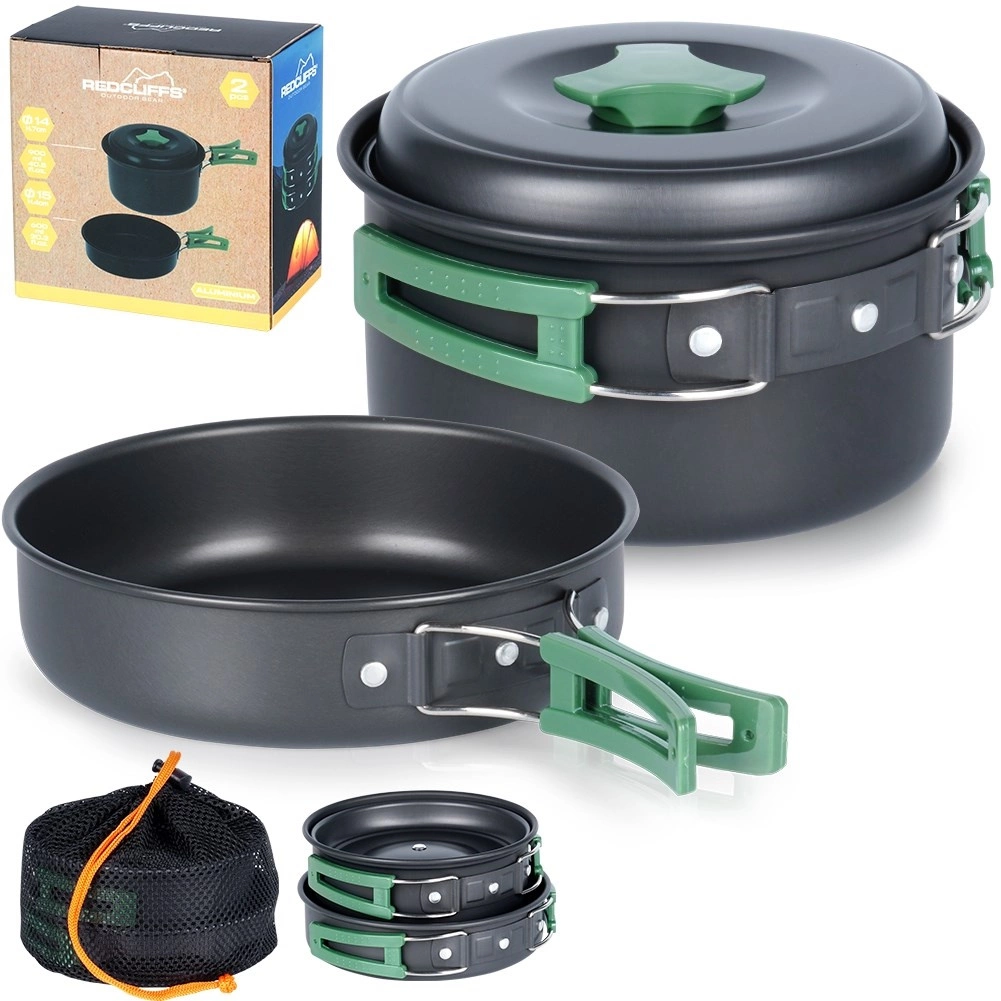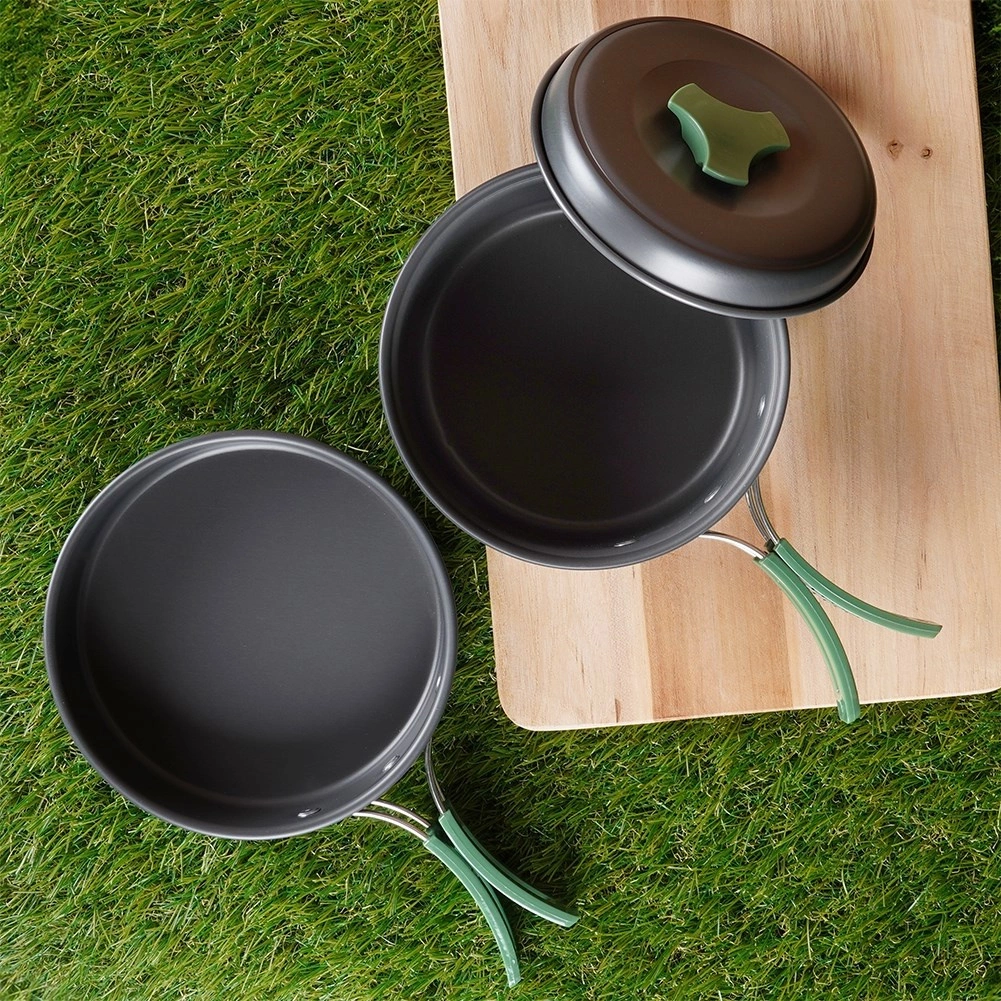 Deze lichte en duurzame pannenset is ideaal voor kamperen, trekking en picknicks. Geanodiseerd aluminium zorgt voor snelle, gelijkmatige verhitting, lange levensduur en eenvoudig onderhoud. Dankzij de inklapbare handgrepen en het stapelbare ontwerp past de hele set in een compact pakket dat gemakkelijk in de rugzak kan worden opgeborgen.