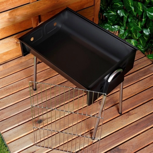 Ingeklapt meet de barbecue slechts 48 × 33 × 12 cm, waardoor je hem makkelijk opbergt en meeneemt op reis, naar een picknick of een weekendje weg.