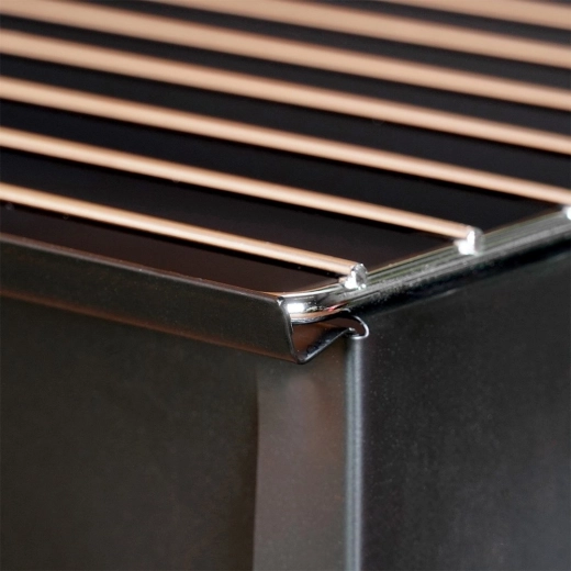 Duurzame materialen zorgen voor een lange levensduur – de stalen behuizing met poedercoating weerstaat hoge temperaturen en weersinvloeden, terwijl het verchroomde rooster onderhoudsvriendelijk is en uitneembaar voor snel schoonmaken.